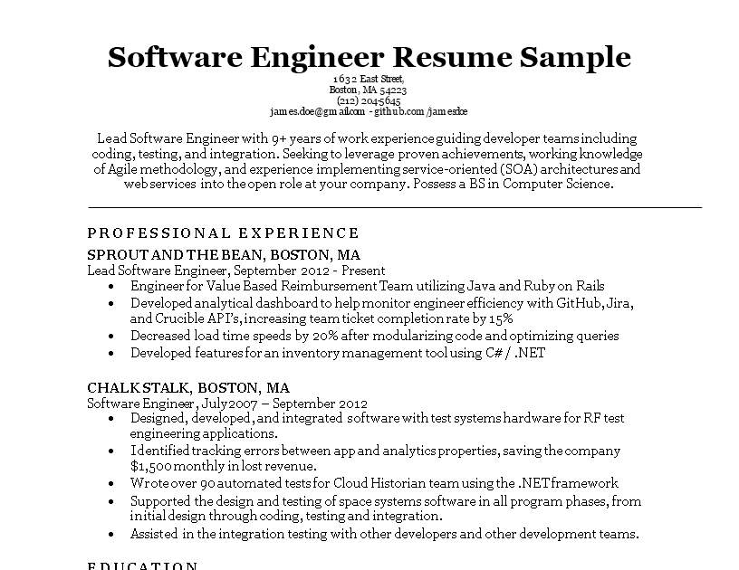 Software Engineer CV Example - icover.org.uk from icover.org.uk Visualcv offers thousands of free cv examples from real professionals to help you get hired. Livecareer's resume examples are a great place to start. (1) leadership (2) security (3) efficiency. Jul 05, 2021 · senior software engineer resume job description—example. As you can see from the computer engineer cv sample, digital skills are at the bottom of the page. Pick a template, fill it in. What does a perfect cover letter for a software engineer look like? It's your doorway to become the next best software engineer this side of ai.
